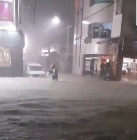 최근 모든 도로가 침수된 부산에서 최악의 극한직업이 촬영됐습니다. 과연 어떤 직업일까요?