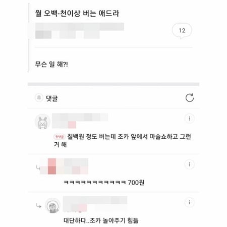 이를 본 누리꾼들은 "700원이지만 어디서나 말할 수 있는 떳떳한 직업" "여초 사이트에서 보기 힘든 개그네" 등의 반응을 보였습니다.