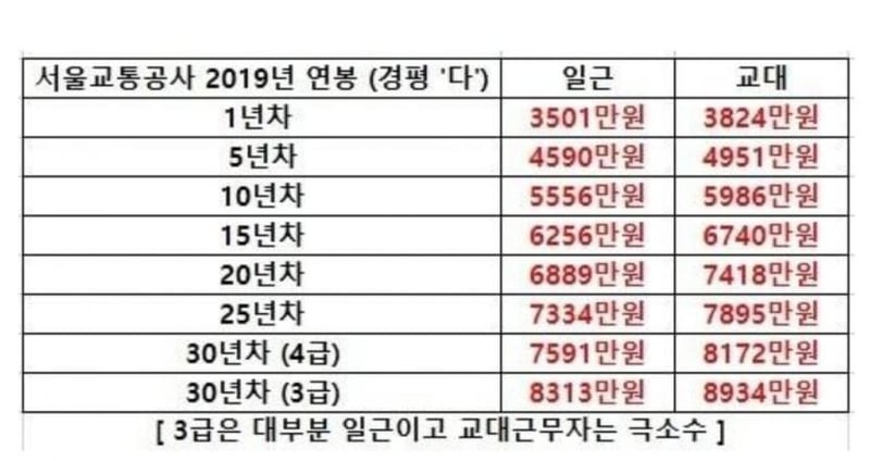 약 위의 표 정도 되는 연봉을 받습니다. 죽자살자 노력해서 대기업에 가서 시달리느니 워라벨이 좋은 공기업에 사람이 몰리는 상황입니다.