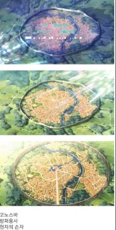 위 사진은 일본에서 현재 인기리에 방영중인 이세계 애니메이션에 나오는 수도들의 모습입니다. 이게 어떻게 증거가 될 수 있냐고요?
