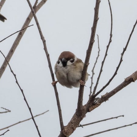언뜻 보면 이상한 것은 없지만 자세히 보면 참새가 나무에 앉아있는 모습이 참 기묘합니다.
