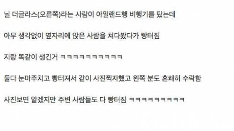 자신과 똑같이 생긴 사람을 비행기 옆자리에서 만날 확률은? 한 커뮤니티 사이트에 비행기 옆자리에 탄 사람이 본인과 똑같이 생긴 일에 관한 사진이 올라와 화제가 되고 있다. 추천 이슈 칸예 웨스트, 내한 후 은퇴 소문? 한국 공연이 마지막 무대?