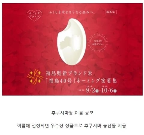 후쿠시마 쌀 이름 공모전 방사능으로 오염된 땅 후쿠시마, 하지만 일본은 땅과 농산물들이 모두 피폭됐음에도 여전히 후쿠시마에서 쌀 농사를 하고 있다고 합니다.한 술 더 떠 후쿠시마 쌀에 이름을 붙이는 공모전까지 열었다고 하는데요 같이 근황을 알아봅시다.▲ 출처: 트위터이를 본 누리꾼들은 "핵반이나 고이즈 미 어떠세요?" "먹으면 헐크처럼 강해지는 헐크 쌀 어때?" 등의 반응을 보였습니다. 추천 이슈 칸예 웨스트, 내한 후 은퇴 소문? 한국 공연이 마지막 무대?