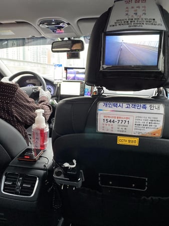 카카오 택시를 부른 누리꾼은 놀랄 수밖에 없었습니다. 차 안에는 전후방 실시간 카메라와 좌우 측 사각지대용 후방 실시간 카메라까지 달려 있었고 뒷좌석에는 내리기 전에 뒤에 오는 차를 확인할 수 있는 카메라까지 달려있었습니다. 거기에 코로나 바이러스를 대비한 손 소독제까지 겸비한 완벽한 택시였습니다.