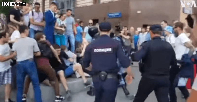 한국 경찰은 여성을 떄리지 않고 여경이 제압하게 하지만 러시아 경찰은 신체적 접촉 없이 몽둥이로 혼쭐을 내준다