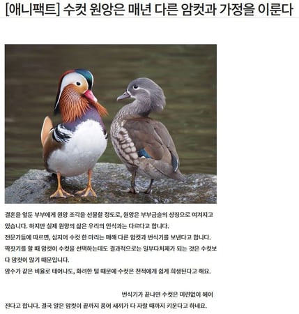 하지만 이런 원앙의 금슬에는 숨겨진 진실이 있다고 합니다.