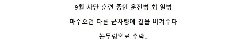 훈련 중인 운전병이 마주오던 다른 군차량에게 길을 비켜주다가 논두렁으로 추락하는 사고가 있었습니다.