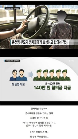 이 사고가 형사처벌의 대상이며 군사재판을 받을 수 있다는 말에 운전병의 부모님은 차에 타고있던 군인들에게 치료비와 진단비로 각 15 ~40만원 씩 지급했습니다.