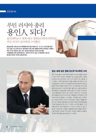 상트페테르부르크대학교 국제법 학사를 거쳐 상트페테르부르크광산대학교 대학원 경제학 박사를 졸업한 푸틴은 2010년 용인대학교 대학원 명예박사로 최종 학력이 프로필에 기재되어 있다.
