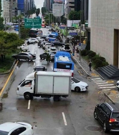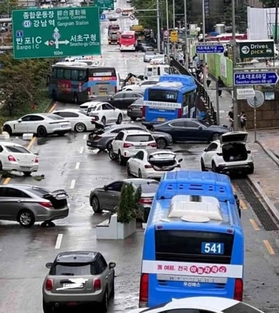 강남 도로 한복판 침수 차 근황 버스, 자동차, 화물차 등 차량도 다양함커뮤니티에서는 침수차량들이 곧 정상 중고차로 둔갑해서 팔리자 않을까 걱정하고 있다. 추천 이슈 칸예 웨스트, 내한 후 은퇴 소문? 한국 공연이 마지막 무대?