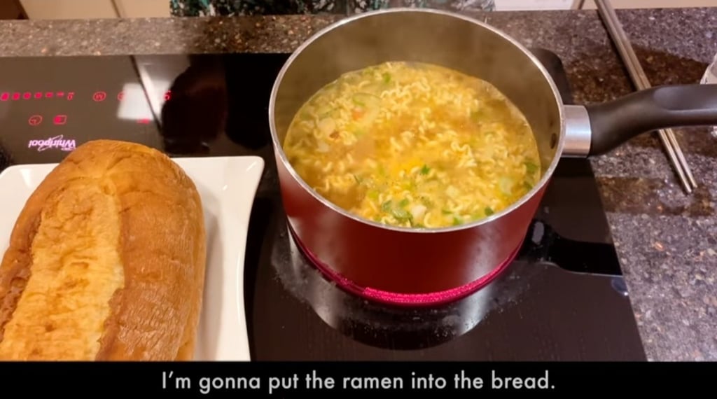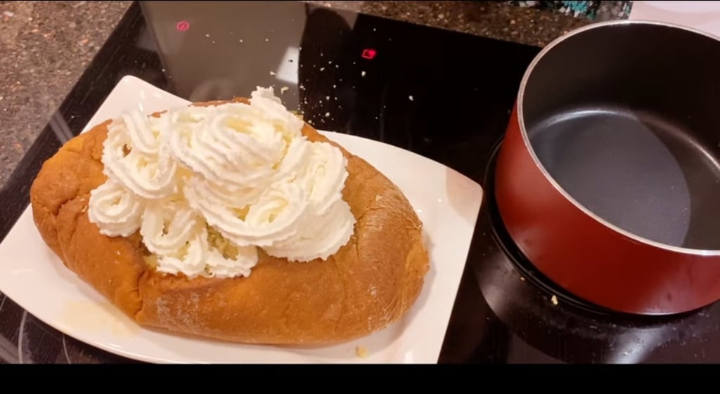 바로 라면을 끓에 그 라면을 빵 안에 넣어 빠네처럼 담은 다음 위에 휘핑크림을 얹어서 먹는다고 합니다. 이게 정말 맛있을까요?