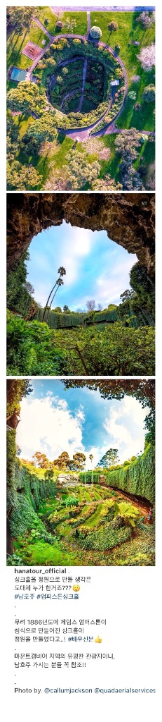 이렇게 싱크홀이 발생하고 나면 이를 복구하는데 매우 많은 노력과 시간이 필요합니다. 최근 이런 싱크홀을 관광지로 만든 호주가 누리꾼들의 주목을 받고 있습니다. 호주는 싱크홀을 어떻게 관광지로 만들었을까요?