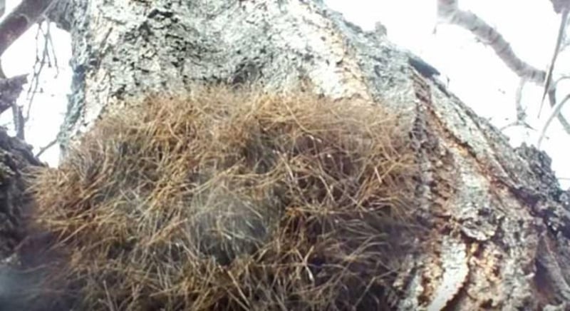 게시자에 의하면 한 남성이 촬영한 것으로 보이는 이 영상은 나무 중턱에서 이런 형태의 것을 발견하고 건들어본다.