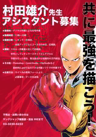 바로 무라타 유스케라는 만화가의 어시스턴트로 근무를 하면 월 500을 벌 수 있다고 합니다. 그렇다면 여기서 말하는 1화 분량 작화는 어떤 모습일까요?