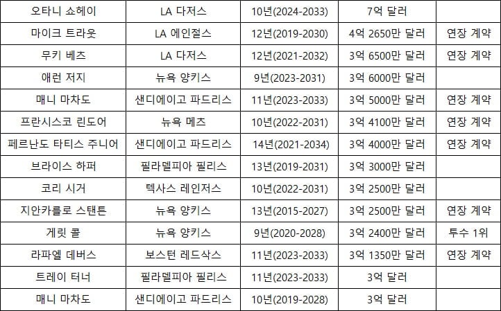 역대 메이저리그 계약 규모 순위.jpg https://twitter.com/MLBONFOX/status/1733598553363374362 추천 이슈 칸예 웨스트, 내한 후 은퇴 소문? 한국 공연이 마지막 무대?