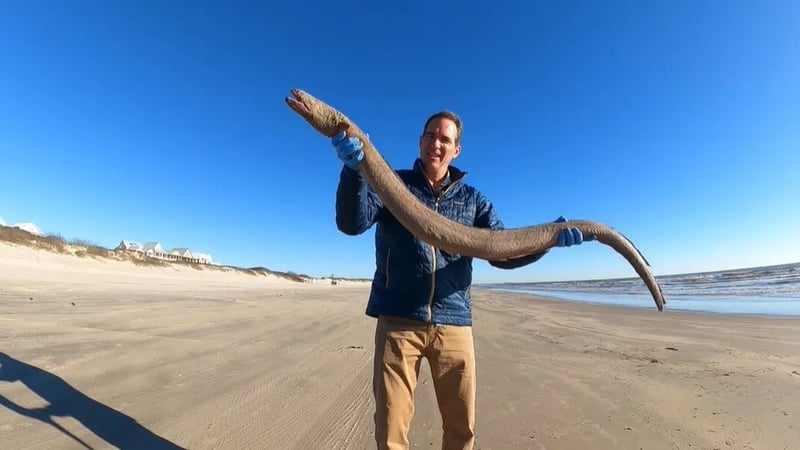 해변을 조사하던 중 한 해양 연구원이 텍사스에서 밀려온 희귀한 122cm 길이의 미국 뱀장어를 발견했다고 보도했다.