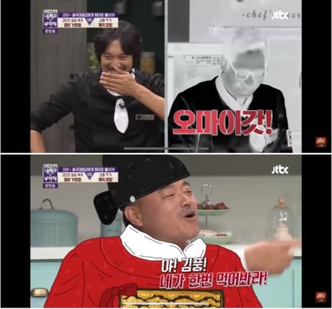 짧은 시간으로 이상하게 맛있는 요리를 만드는 요리하는 만화가 김풍의 음식을 맛이 없다고 신랄하게 비판한 것입니다.