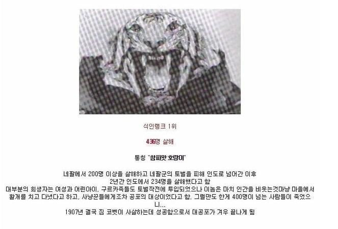 이런 방식으로 사람들을 마구 잡아먹은 역대 최악의 식인 동물들 같이 볼까요?