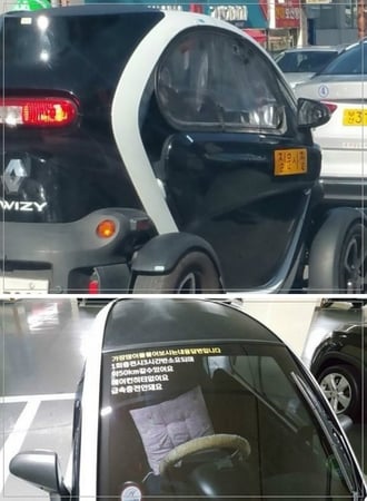 오토바이랑 비슷한 느낌의 1인승 전기차입니다. 많은 사람들이 귀찮게 질문을 해 질문 사절 혹은 FAQ를 직접 작성한 것 같네요.