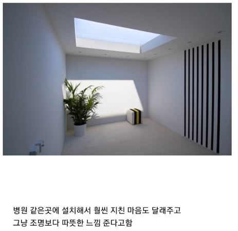 바로 인공적으로 태양의 빛을 만드는 인공 태양 조명 개발에 성공한 것입니다. 일반 조명보다 훨씬 깔끔하고 편안한 분위기를 주는 것 같네요.