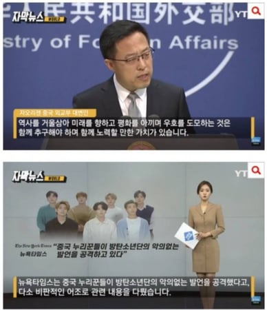 BTS와 관련된 보도와 중국 누리꾼들의 반응을 주목하는 중이라는 중국 외교부, 이들의 말투는 어딘가 화가 난 것처럼 보입니다.