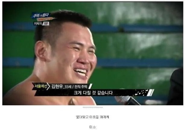 그냥 격투기 프로 선수와 격의 차이를 한번 보여주면 금새 인상 좋은 옆집 아저씨의 얼굴로 변합니다.