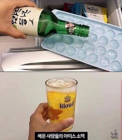 일명 배운 사람들의 소맥이라고 불리는 아이스 소맥, 소주를 얼려 맥주에 얼음처럼 동동 띄워 먹는다.
