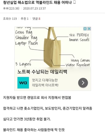 최근 청년실업의 새로운 일자리로 역 블라인드 채용을 실시하면 어떻겠냐는 누리꾼의 글이 화제가 되고 있습니다.