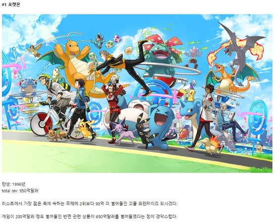 와 포켓몬은 오래된 IP도 아닌데 돈을 정말 많이 벌었네요.