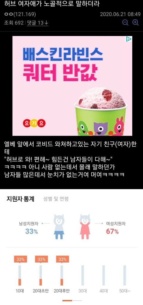이를 본 누리꾼들은 "그냥 직장은 남초 직장 가는 것이 제일 속 편하지" "쿠팡 알바 해봤는데 극공감이다ㅋㅋㅋ 진짜 남자로 살기 힘들다" 등의 반응을 보였습니다.