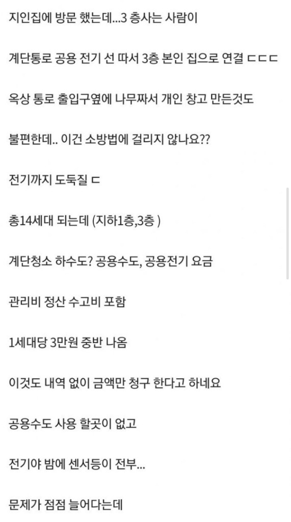 바로 공용전기를 따로 끌어다가 자신이 사용하는 전기도둑이 다세대 주택에 산다고 합니다. 소방법에 크게 데일 것 같은데 사이다 엔딩으로 끝나면 좋겠네요.