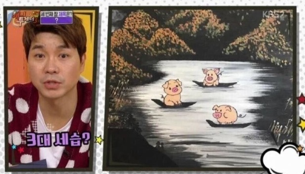 다른 개그맨보다 한 수 위인 박수홍의 드립. 해피투개더에서 진행했던 간단한 퀴즈, 위 그림을 보고 그림이 무엇을 뜻하는지 맞추는 캐치마인드류 퀴즈였는데요. 이 퀴즈에서 발언한 박수홍의 발언이 화제가 되고 있습니다.▲ 출처: 해피투게더돼지 세마리를 보고 북한 세습 돼지들을 생각하다니 대단하네요.이를 본 누리꾼들은 "그래서 답이 뭐임?" "세뱃돈" 등의 반응을 보였습니다. 추천 이슈 칸예 웨스트, 내한 후 은퇴 소문? 한국 공연이 마지막 무대?