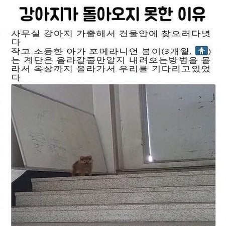 댕댕이가 가출해서 돌아오지 못한 이유 한 커뮤니티에서 가출한 강아지가 돌아오지 못한 이유가 화제이다.출처: 인터넷 커뮤니티 캡처 추천 이슈 칸예 웨스트, 내한 후 은퇴 소문? 한국 공연이 마지막 무대?