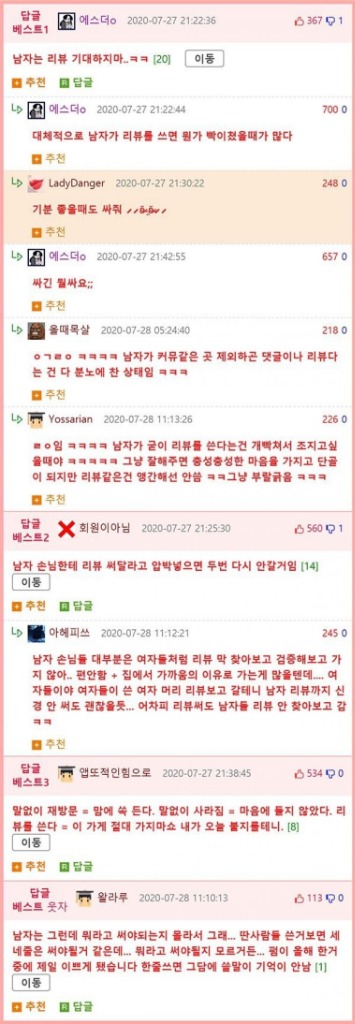 남자들은 기분이 좋을 땐 리뷰를 잘 쓰지 않고 누군가를 망치고 싶을 때 리뷰를 적기 때문에 가급적 리뷰가 안 올라오는 것이 이득이라고 합니다. 남자 입장에서 공감이 가네요.