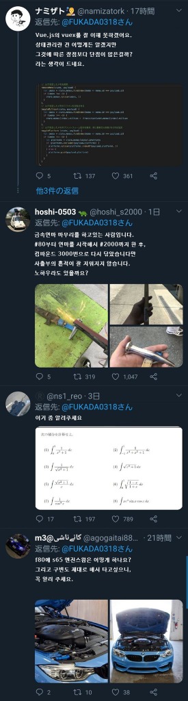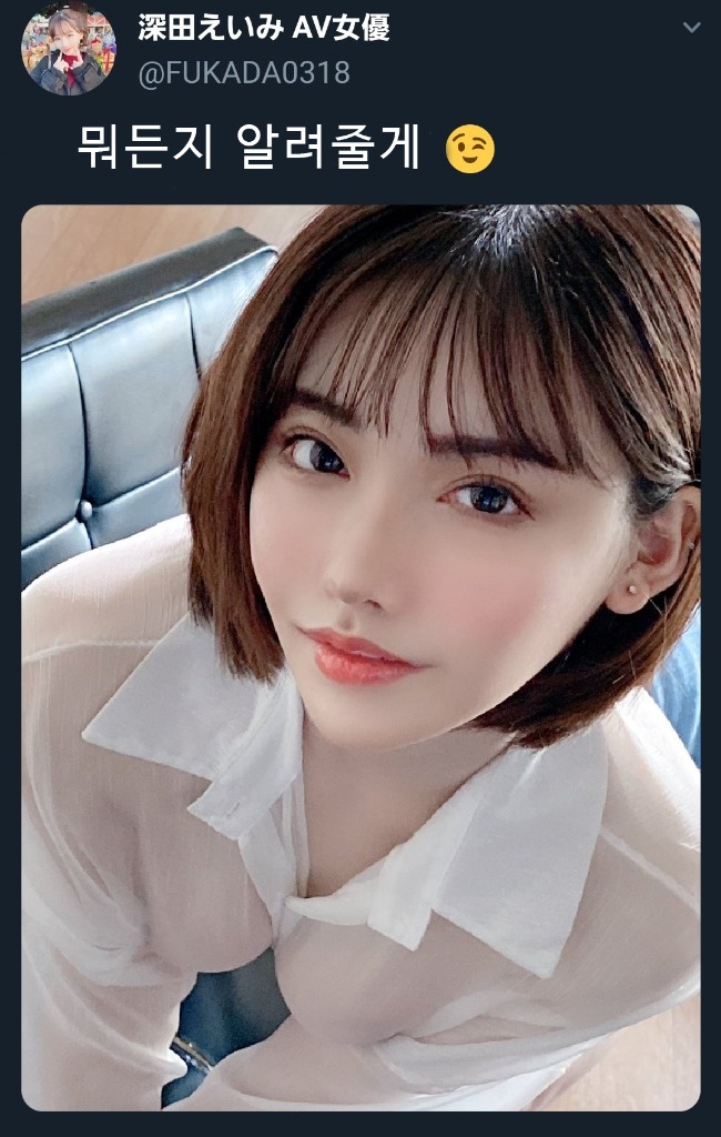 AV배우의 무엇이든 물어보세요. 후카다 에이미 최근 심심했던 한 AV배우가 자신의 트위터에 궁금한 것은 무엇이든 물어보라고 올린 글이 화제가 되고 있습니다.과연 이 배우에게는 어떤 질문들이 달렸을까요?▲ 출처: 후카다에이미 트위터이를 본 누리꾼들은 "오늘도 저의 하루를 부탁드립니다 ㅎㅎ" "후카다 에이미 갑자기 잘나가네" 등의 반응을 보였습니다. 추천 이슈 칸예 웨스트, 내한 후 은퇴 소문? 한국 공연이 마지막 무대?