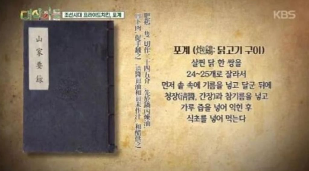 1400년 전 조선에서 최초로 만들어진 치킨 레시피 공개. 출처: 픽사베이한 커뮤니티 사이트에 '1400년 조선시대에 최초로 만들어진 치킨의 레시피'가 공개되어 화제가 되고 있다.레시피는 다음과 같다.출처: KBS 프로그램' 대식가들' 캡처위 과정을 본 누리꾼들은 "맛있겠다"는 반응과 "별로다"라는 반응 등 다양한 반응을 보였다. 추천 이슈 칸예 웨스트, 내한 후 은퇴 소문? 한국 공연이 마지막 무대?